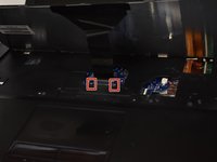 Push the two tan brackets towards the back of the computer, and safely pull out the connector ribbon.