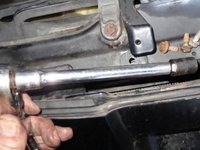 Remove the 12mm bolt holding the top of the alternator in place, then remove the long 14mm bolt. You will need patience to racket it out as there is not a lot of room to move your wrench thanks to the A/C piping!