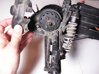 Grasping the motor, slide it out towards the left tire, removing it entirely.