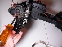 Using a number Phillips #1 screwdriver, remove the two screws that hold the plastic motor housing together.