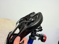 Apply Finish Line Premium Grease to the rails of the bicycle saddle.