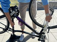 Tighten or loosen the quick release bolt on the brake arms to adjust based on preference.