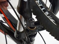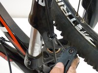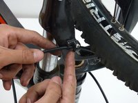 Unscrew the bracket located on the front tire with a 3mm allen wrench.