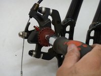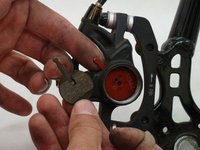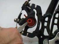 Unscrew the brake pad cap with a T25 screwdriver bit.