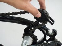 Thread one end of the chain through the derailleur from top to bottom so it is in the shape of a 'S'.