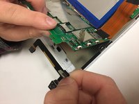 Disconnect the camera from the motherboard on the topside and pull the camera strip out.