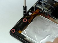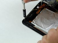 Use a J000 Phillips head screwdriver to remove the two 4.3 mm screws securing the speaker to the device and set them aside.