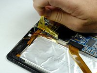 Use your fingers to remove the plastic L-shaped speaker housing from the tablet.