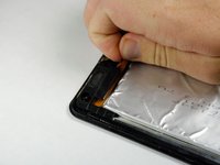 The plastic volume button cover may fall out when you remove the back panel. Set it aside.