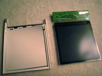 The screen is sandwiched in a metal case. It didn't seem clipped together but it was a snug fit. I pushed on the circuit board through the cutouts in the metal to pry the pieces apart.
