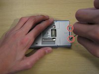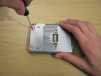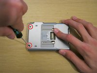 Remove the two Phillips #00 screws on either side of the device, on the sliding panel.
