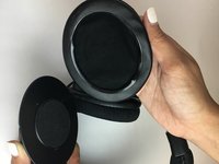 Grip ear cushion and carefully pull up and separate from the plastic headphone.