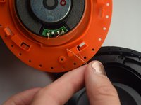 Using wire cutters, cut the two wires that are attached to the speaker.