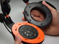 Using the new cushion, align the pegs located on both the orange plate and ear cushion.