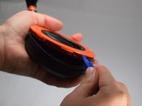 Using the hand not holding the ear cushion, grasp the orange plate that is below the ear cushion.
