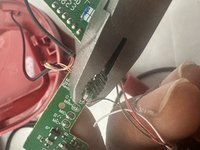 Remove the motherboard from the headset by up and away from the volume wheel.