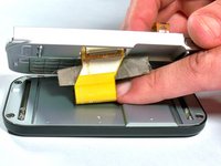Use the spudger to remove the tape from the connector between the screen and the front button circuit board.