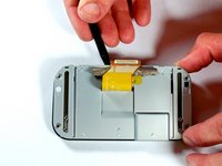 Carefully lift up on the motherboard with the spudger until you can see the display cable connected to the underside of the motherboard. The display cable connector will be taped over.