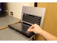 • Set up a clean workspace and gather all supplies. You will need your Macbook Pro, a new screen, a hair dryer, a screen cleaning cloth, and a suction cup.