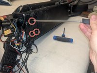 • Flip the scooter upside down and insert the 5 mm Allen wrench into the 4 slots that were exposed by removing the rubber nubs. Make sure that no wires are in the way.