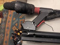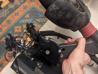 • Move the stem to the side, being wary that there are still some wires anchoring it to the base of the scooter.