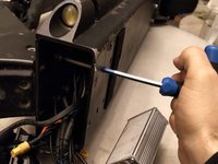• Use your flathead screwdriver/prying tool to pry the front panel off. Move the prying tool around the panel, and try to apply pressure evenly around the panel (dont pull the entire right half out and leave the left half inside the frame).