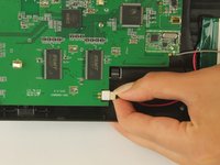 Disconnect the head of the cable attached to the motherboard by pressing on the outer edge of the cable and sliding it out.
