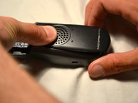 To access the speaker, flip the back shell over and use a plastic opening tool to pop open the black cover