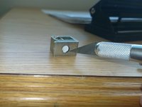 Use your index finger or a X-ACTO knife to move aside the puncher out of the 3-hole puncher.