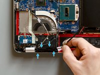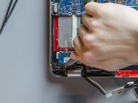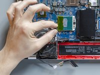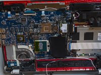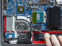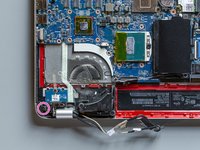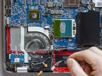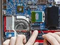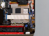 The job is done! The new display panel and its new cable are finally connected to the laptop. Only the new thermal paste layout and the final reassembly are missing.