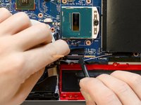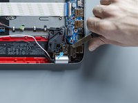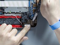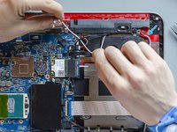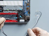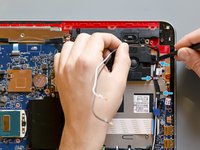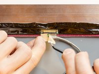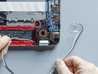 Using a pair of tweezers detach the adhesive stripe that holds down the antenna cables on the motherboard.