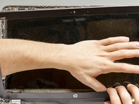 Turn the laptop upside down and gently lay it down on a flat surface.