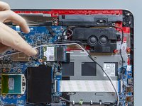 Carry on the removal of the wireless antenna cables releasing them from eventual intersections with other cables and from the clips built into the top cover and the connector board. Use a spudger to separate them from the other cables if you like.
