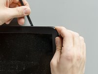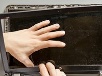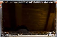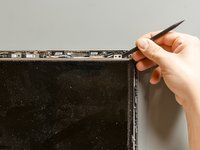 Using a spudger, lift one of the top corners of the display panel until you manage to grab the latter one with your fingers.