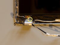 Using a PH#00 screwdriver remove the Phillips PM2.5×4.5 screw which lastly secures the left hinge of the display to the top cover. The screw is visible in the last picture of the previous step.