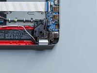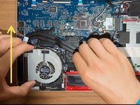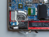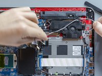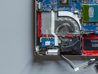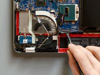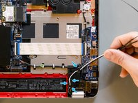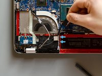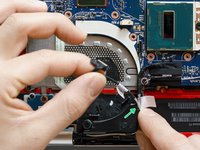Detach the adhesive stripe that secures the webcam's and the display's cable to the fan.