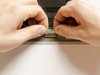 Pry both of the top rubber pads off with a metal spudger. They are attached to the base enclosure with adhesive.