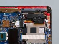 Once both of the hinges are fastened, set the left rear speaker in its original position and secure it to the top cover mounting its two screws.
