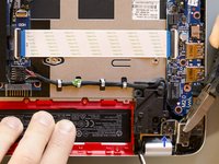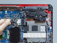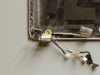 Place the webcam cable back in its routing channel, laying it over the display cable and letting it go through the same clips.