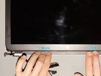 Afterwards, starting from the middle of the bottom edge and going towards the short edges, snap all the tabs of the bezel back into position. Finish the reassembly at the webcam and press a little over the areas where you laid the adhesive.