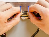 Then, using a spudger, flip up the locking flap of the connector by prying it open. It's possible that it won't disconnect at once because it is quite a firm and long connector. If it is so, don't force it, but gently pry it open to the sides also.