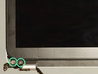 Using a PH#00 screwdriver remove the two Phillips PM2.5×3.2 broad head screws that secure the display bezel to the display assembly.