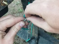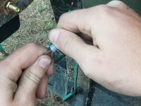 • Take a wire nut and screw it onto the brown twisted-together wires. Do the same thing for the green twisted-together wires.