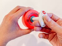 Secure each wheel with the axle nut, turning it clockwise with the PowerDyne Y3 Skate Tool.