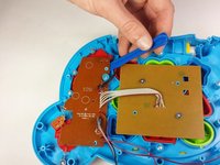 Once the screws have been removed from the board, use a plastic opening tool to gently pry up the board and expose the mode switch assembly underneath.