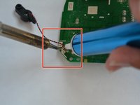 De-solder the antenna's solder joint, located above the microphone wire connection.