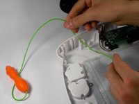 • Undo the knot, then feed the cord from the inside of the case to the outside using the hole the company originally designed for the cord.