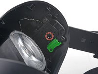 Insert your T6 Torx screwdriver into the hole on the face gasket bezel to remove the captive screw securing the left side of the head strap.
