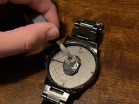 Use a Jimmy or watch back removal tool to pry open the stainless-steel case (sometimes there is an arrow that shows you where to pop up for easier access)