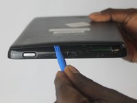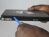 Use the iFixit opening tools to pry open a gap between the tablet and rear panel.